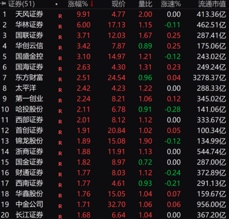 A股券商股尾盘亦明显异动,天风证券直线涨停,华林证券、国联证券、华创云信、国盛金控、东方财富等跟涨。上证50指数日内涨超1%。富时中国A50指数期货午后拉升涨超1%。